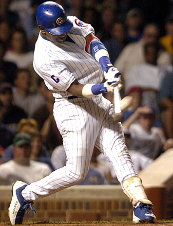 Greg Maddux picked up his 300th career win (above), coming back to the team who originally brought him to the Major Leagues. He had 16 wins for the year, tying Zambrano for the team lead. He is the only pitcher in history to have 17 consecutive seasons with 15 wins or more. In case THAT weren't enough, he won his 14th consecutive Gold Glove. Left-hander Glendon Rusch turned his career around, going 6-2 with a 3.47 ERA. In 2003 he went 1-12 with a 6.42 ERA with the Brewers. He was valuable for the Cubs because he was effective out of the rotation when Wood and Prior were hurt. After they got healthy, Rusch went back to the bullpen and was able to eat innings. Thought by some to be the Cubs' pitching MVP. Rookie right-hander Jon Leicester went 5-1 with a 3.89 ERA when he was forced up from AAA. His first major league win came in a 15-inning game against the Angels. He pitched 3 innings. The Iowa Cubs (AAA affiliate) won their division this year. When at AAA, Mike Wuertz was the closer, saving 19 games (2.42 ERA). Outfielder Jason Dubois hit .314 with 31 homers. For next year... Next year's apparent team (naming as many players as I can): The Lineup: Patterson Hollandsworth/Dubois Burnitz